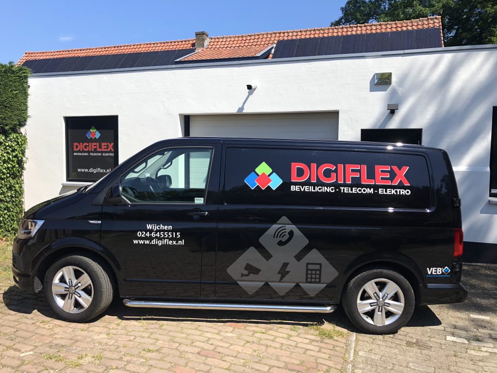 - Digiflex schaft een volledig elektrische wagen aan, zo zijn wij milieu bewust bezig en gaan we op weg om volledig “groen” te worden.